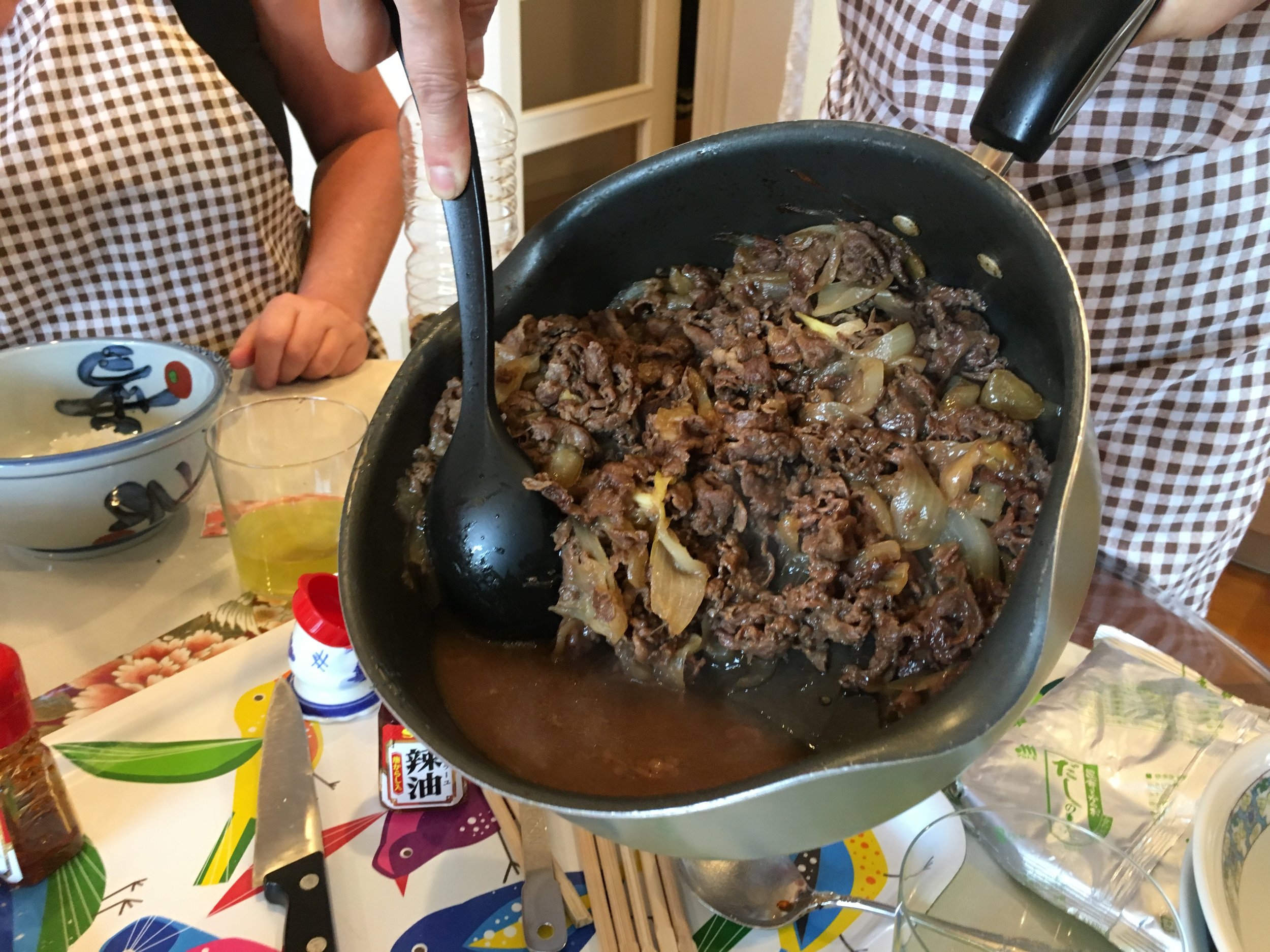 While in Japan, my mom and I took a cooking class with a very funny, quirky and skilled woman named Yuka Mazda. And we loved it (and her!). With Yuka's class you can choose what dish you want to make in her home, so we decided to go with gyudon (beef bowl), pork gyoza, sticky rice and miso soup. The class consisted of nine of us who took turns attempting to make gyoza properly while learning how to cook some phenomenal gyudon. It turned out to be such an amazing, relatively easy and flavorful dish, and we all enjoyed matcha tea and Japanese sweets at the end. Many thanks to Yuka for the cooking lesson!